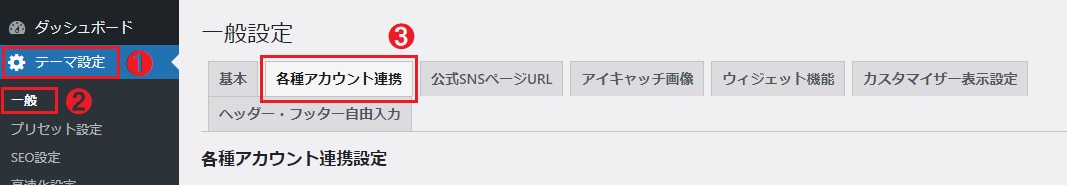 Step1.「テーマ設定→一般設定」へ進む
