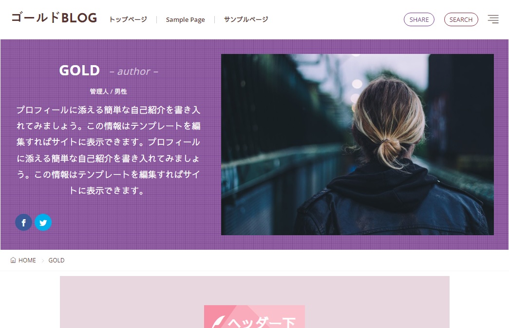 ※「OFF」を選択すると、「共通コンテンツエリア設定」→「ページタイトル設定」の設定内容が、著者ページにも適用されます。