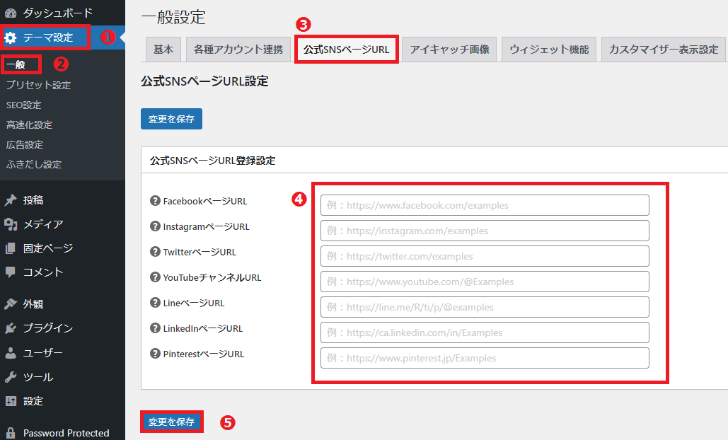 次に、「公式SNSページURL登録設定」❹で、ご自身が保有している公式SNSページのURLを入力します。