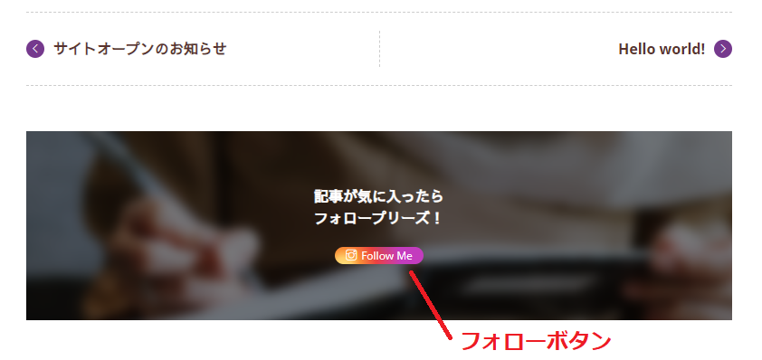 インスタグラムのフォローボタンを投稿ページ下部に設置した事例。