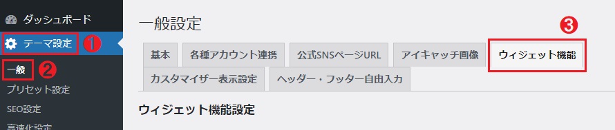 はじめに、「テーマ設定」→「一般」の順に進みます。